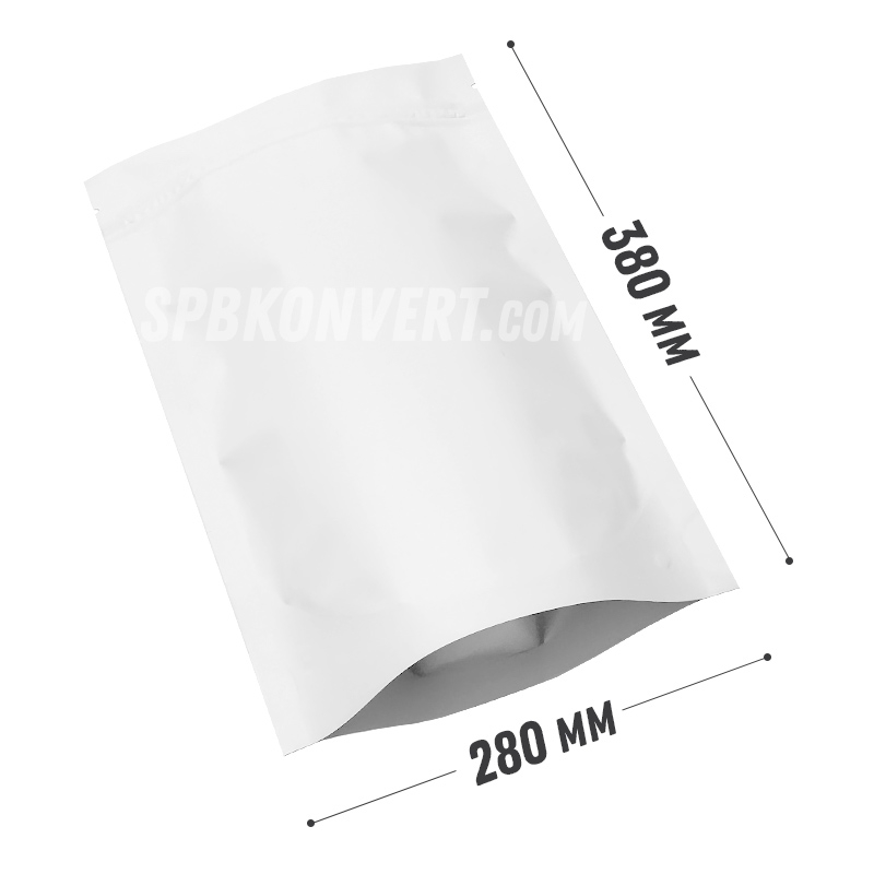 БЕЛЫЙ МАТОВЫЙ ПАКЕТ ДОЙ-ПАК 280*380+60 мм, металлизированный с замком зиплок