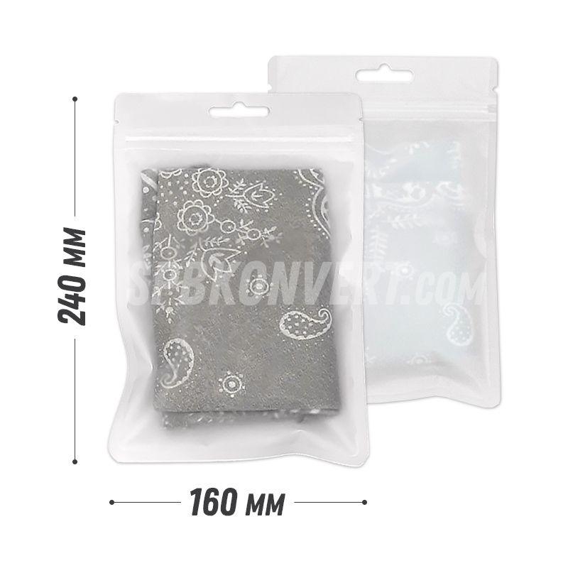 БЕЛЫЙ ZIP-LOCK ПАКЕТ 160х240 мм С ПРОЗРАЧНОЙ МАТОВОЙ СТОРОНОЙ | с европодвесом