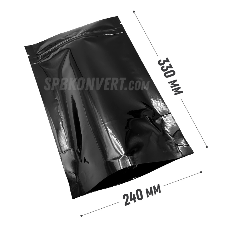ЧЕРНЫЙ ГЛЯНЦЕВЫЙ ПАКЕТ ДОЙ-ПАК 240*330+45 мм, металлизированный с замком зиплок