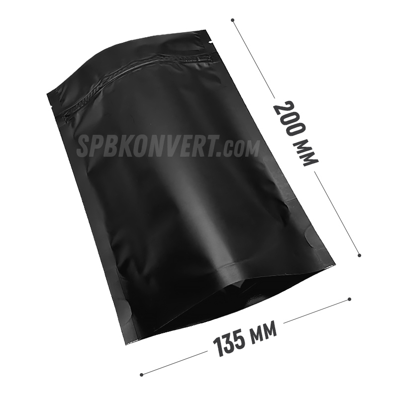 ЧЕРНЫЙ МАТОВЫЙ ПАКЕТ ДОЙ-ПАК 135*200+40 мм, металлизированный с замком зиплок