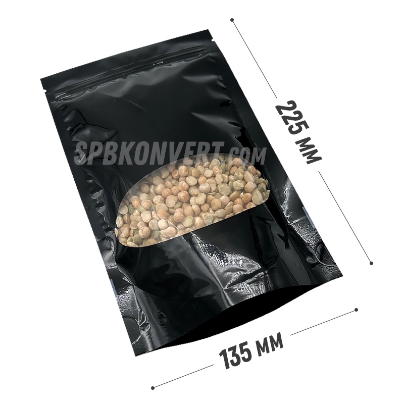 ЧЕРНЫЙ ПАКЕТ ДОЙ-ПАК 135*225+40 мм С ОВАЛЬНЫМ ОКНОМ, с замком зиплок