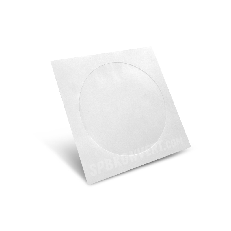 Квадратный конверт с прозрачным круглым окном для дисков CD/DVD. Клапан с сухим клеем декстрин, который для заклеивания необходимо увлажнять.