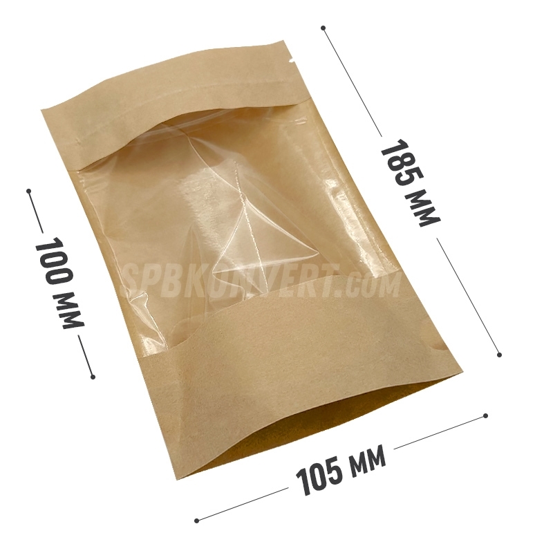 КРАФТ-ПАКЕТ ДОЙ ПАК 105х185 мм С ПРОЗРАЧНЫМ ОКНОМ, с замком zip-lock