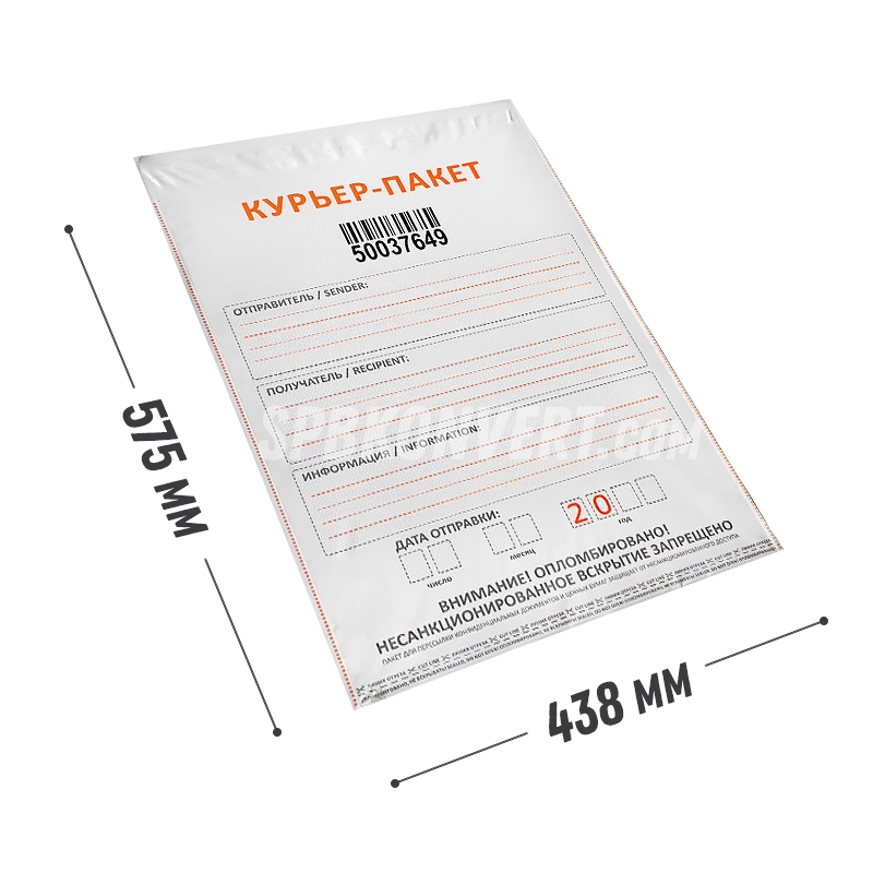КУРЬЕРСКИЙ ПАКЕТ 438x575 мм с номером и штрих-кодом