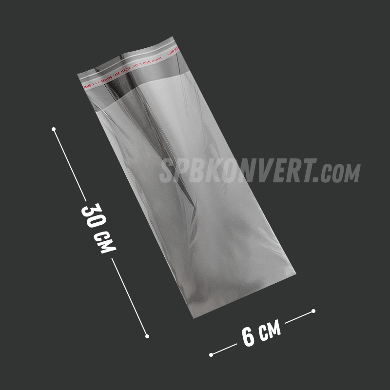 Прозрачный пакет БОПП 6х30 см с клапаном | Бопп 25 мкм