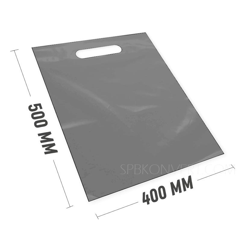 ПАКЕТ С ВЫРУБНОЙ РУЧКОЙ 400*500 мм "СЕРЕБРО" полиэтиленовый 70 мкм / закладное дно