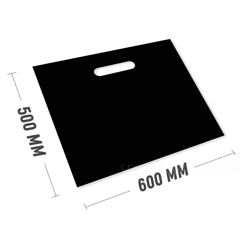 ПАКЕТ С ВЫРУБНОЙ РУЧКОЙ 600*500 мм ЧЕРНЫЙ полиэтиленовый 70 мкм / закладное дно