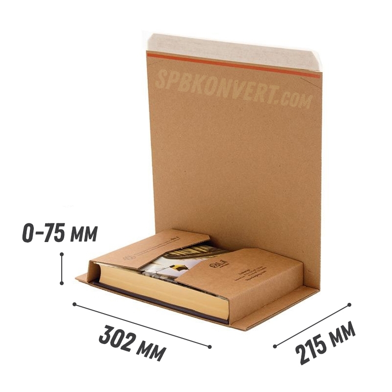 Универсальная упаковка из картона подойдет для малогабаритных товаров: книг, ежедневников, блокнотов, CD/DVD -дисков и т.п. Внутренний размер 302*215*0-75 мм (высота регулируется в диапазоне 0-75 мм). Соответствует формату А4. Коробки сконструированы таким образом, чтобы легко подстраивается под размер упаковываемой посылки по ширине, благодаря предварительно нанесенным линиям сгиба. Это особенно важно, если вы отправляете не одну, а несколько книг. Она без труда заклеивается благодаря предварительно нанесенному сверхпрочному клею, защищенному силиконовой лентой. При получении, вашему клиенту для вскрытия потребуется лишь оторвать перфорированную полосу.